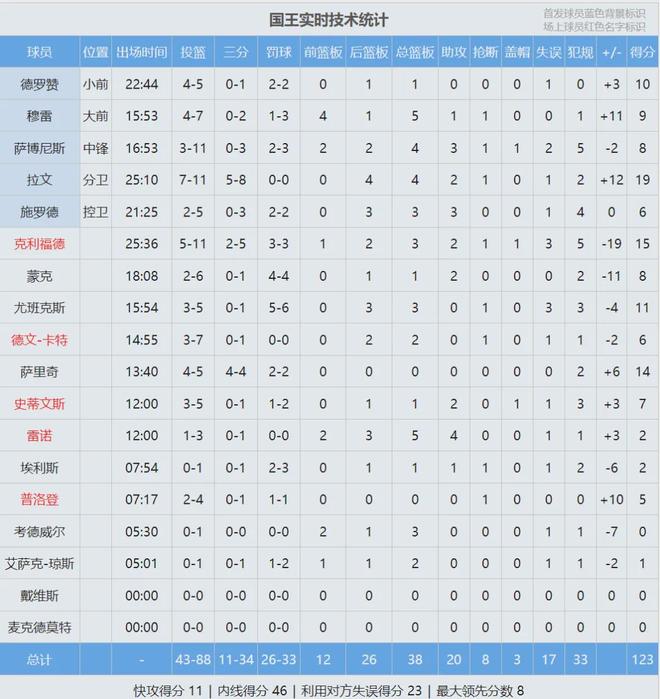 国王首发:施罗德、拉文、德罗赞、基根-穆雷、小萨博尼斯。今天NBA名记Shams报道,威少和国王互相有意,常规赛开始前双方有可能达成签约意向。最近有则报道,说CBA球队给威少的报价是国王队的4倍,教主觉得不太可信。